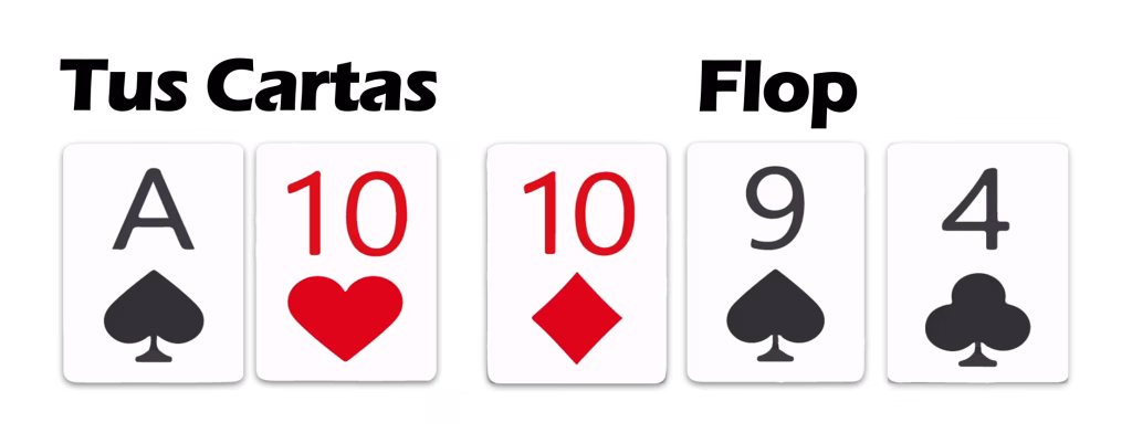La «Top Pair» o «pareja máxima» se forma cuando una de las cartas iniciales del jugador combina con la mejor carta comunitaria para crear una pareja.